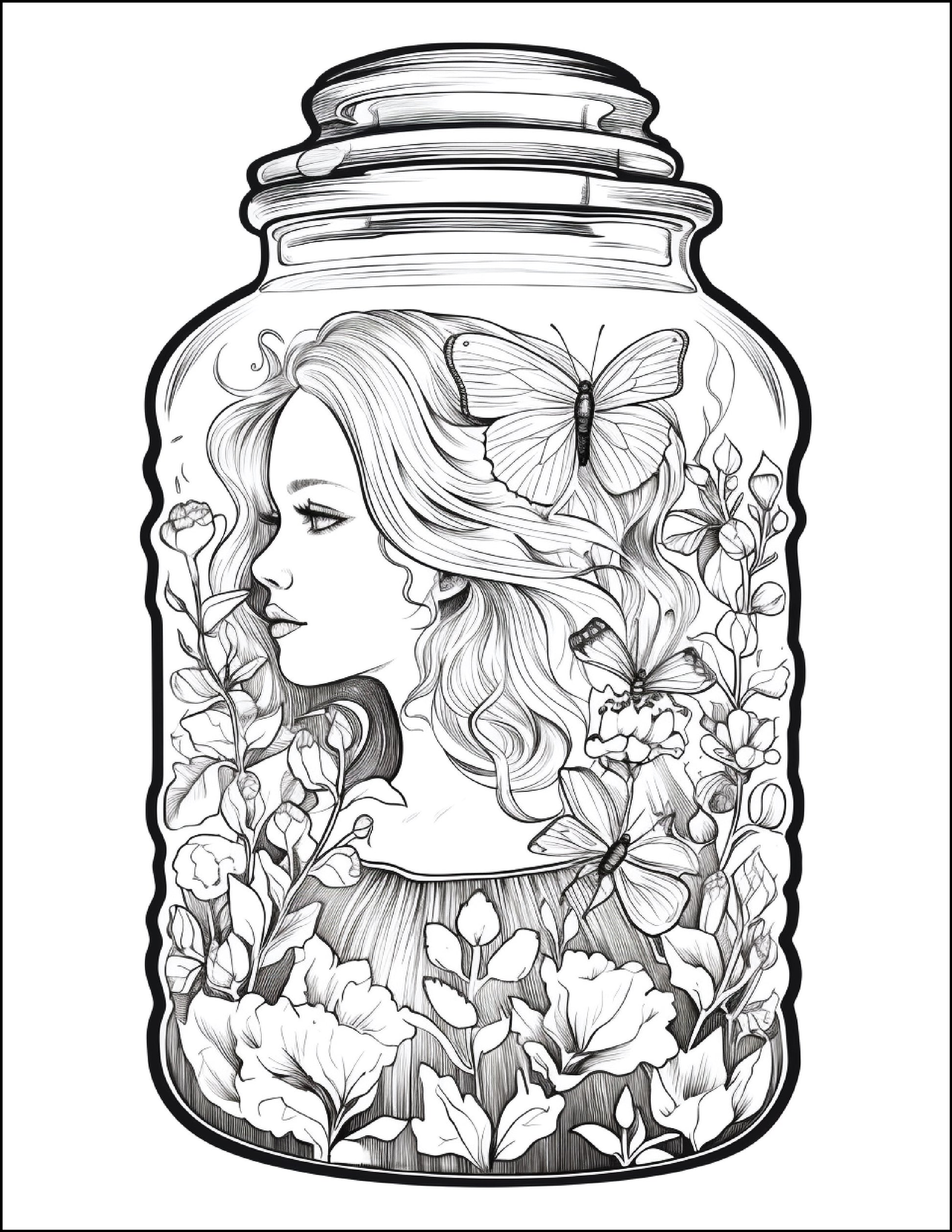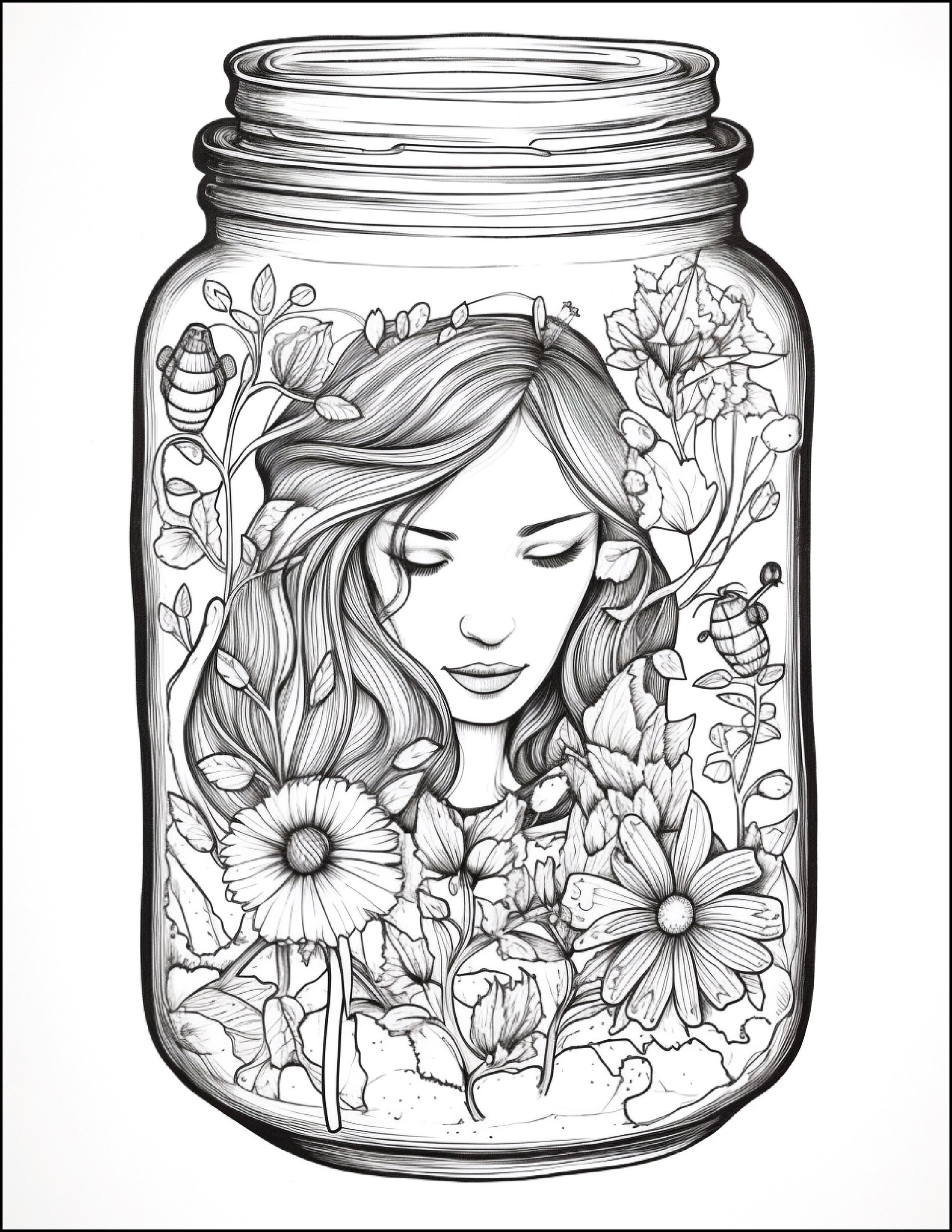 Life inside a jar - 200 Pages Colouring Book Digital Download